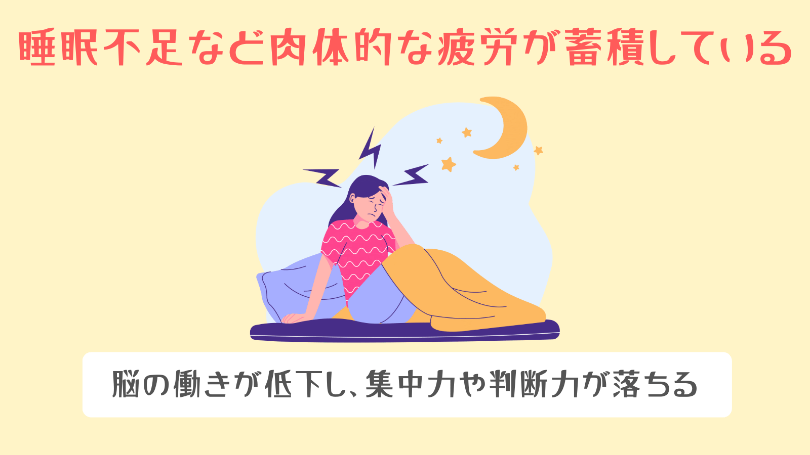 睡眠不足や過労といった肉体的な疲労が蓄積すると、無気力を感じやすくなります。
