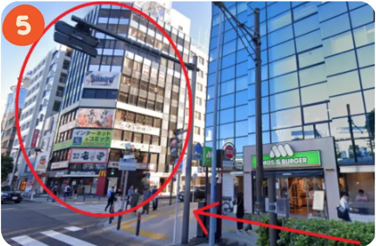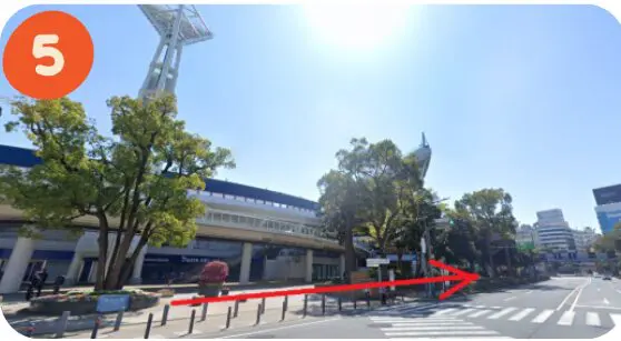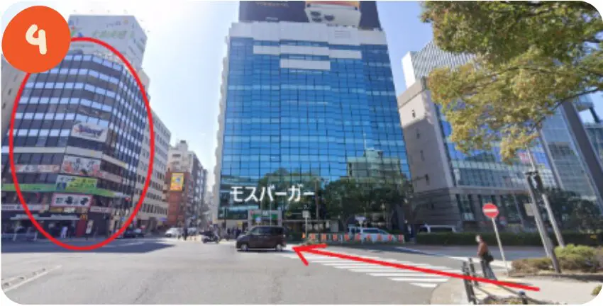 あります)まで来たら、正面の横断歩道を渡ってから左に曲がり進みます。