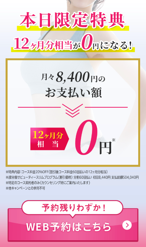また現在、月々8,400円が12ヶ月分無料(※)になるキャンペーンを開催中。医療ダイエットを検討してる方は今がチャンスです。